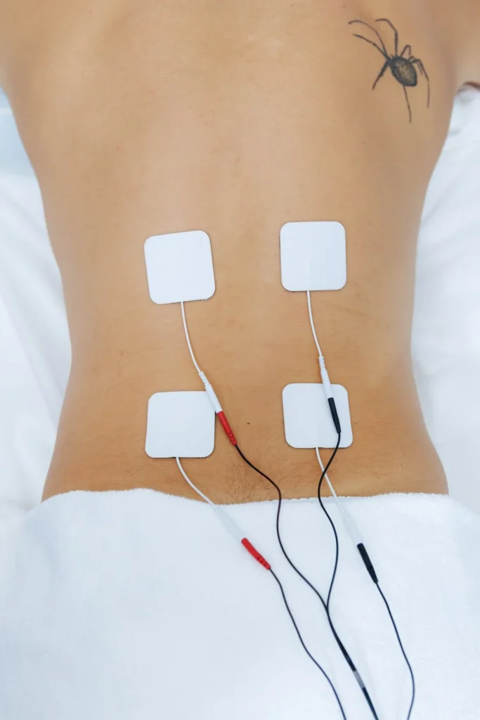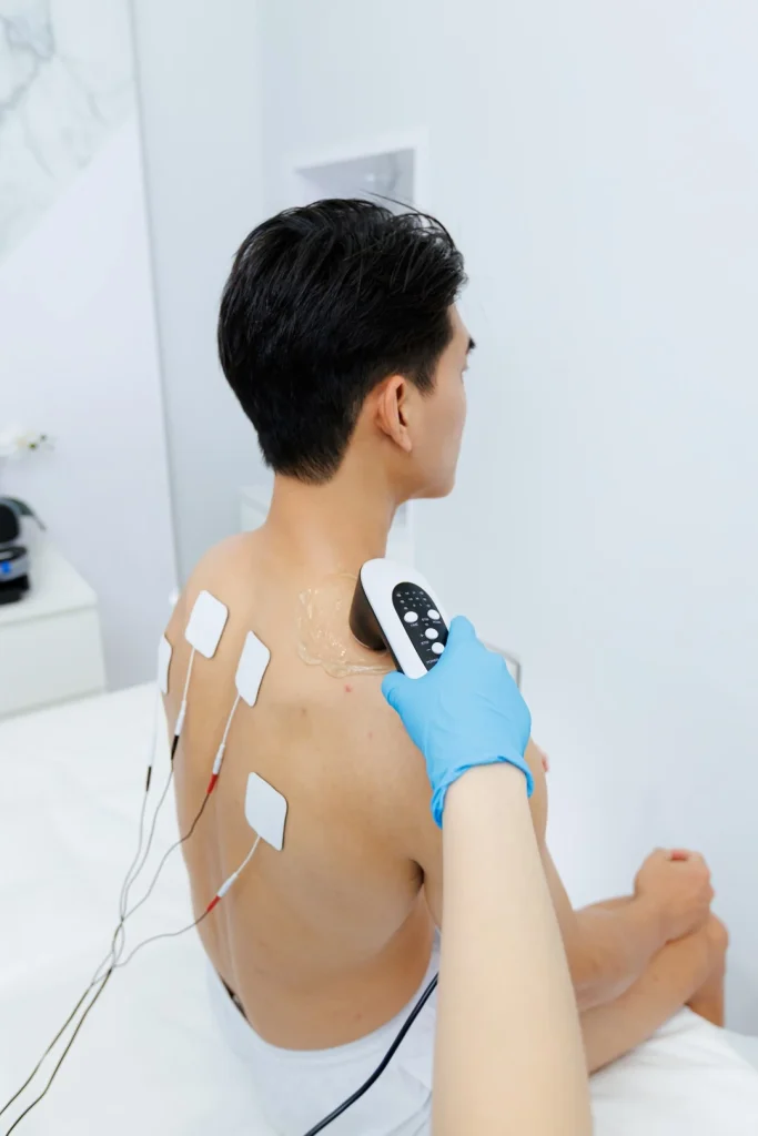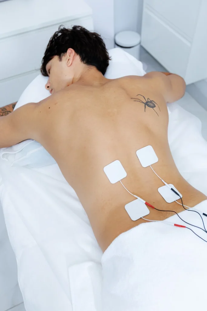 A: We use various tools depending on your specific condition, including a Transcutaneous Electrical Nerve Stimulator (TENS), Ultrasound Therapy, Kinesiology therapeutic taping, and ºCRYO Localized to provide comprehensive and targeted recovery.